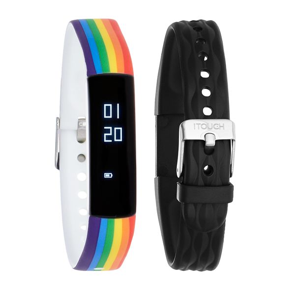 Itouch Itouch Slim Interchangeable Fitness Tracker With Bonus Strap Rainbow Print On White Band Black Band Walmart Com Walmart Com